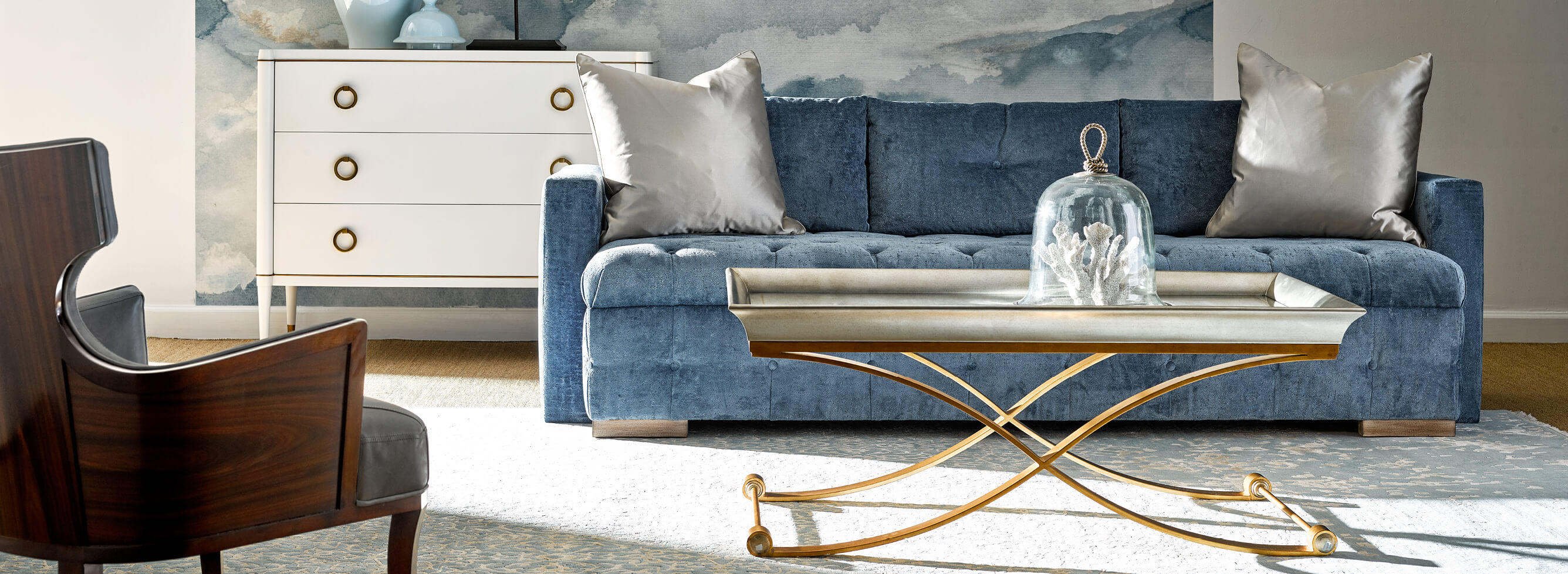 A contemporary coffee table with an églomisé glass top and a beautifully curved gilded iron base. (Old salescode: 495729-EGL-02)..