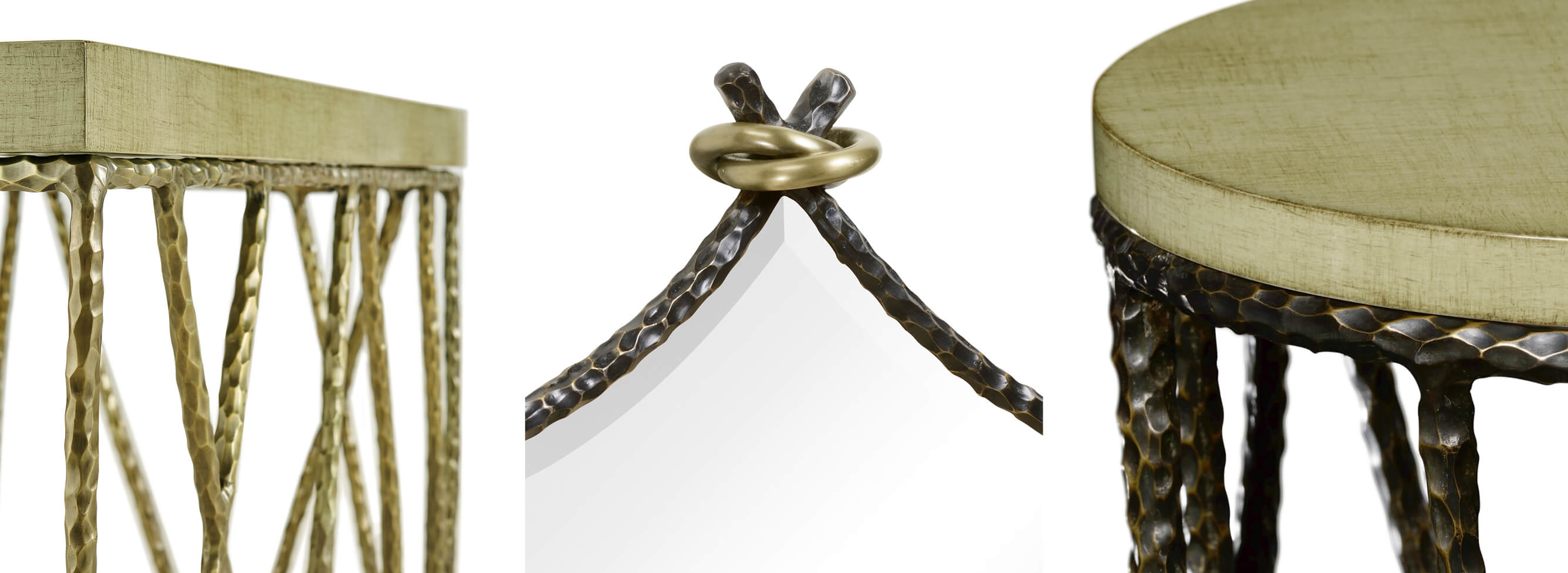 Stylish hammered iron and patinated antique black brass side table with glass inset top and ring detail. Inspired by Italian designs of the 1940's...
