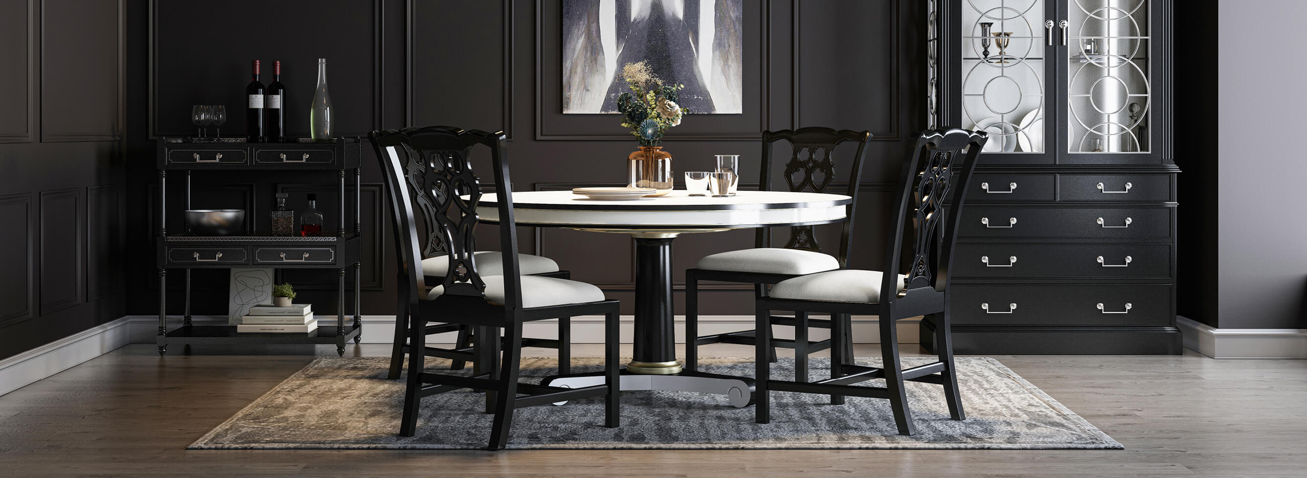 Inspired by the Biedermeier era, Dipole’s clean lines, classic vibes and versatility make it suitable for a variety of settings - dining, foyer, office or living. Bold black and white lines are accented with silverleaf collars for the perfect amount of understated drama that compliments an array of ..