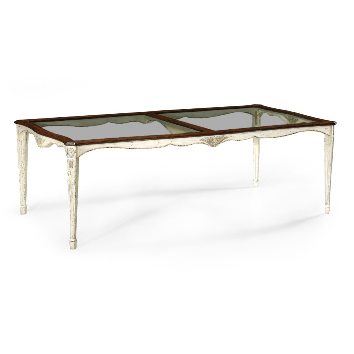 "Rub-Through" Dining Table with Glass Top (Off-White) 92"